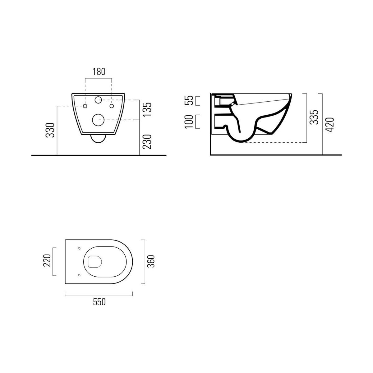 - vas de toaletă montat pe perete