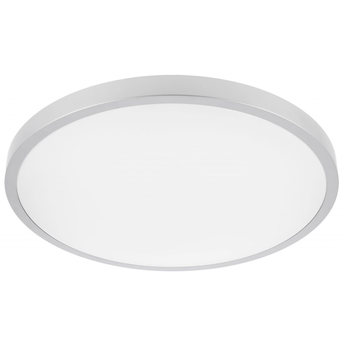 Plafonul circular GTV Atol combină albul și argintiul într-o formă minimalistă care se potrivește atât decorurilor moderne, cât și celor clasice. Fabricat din plastic, acesta are doar 6,5 cm înălțime și 39,5 cm lățime, astfel încât nu îngreunează vizual tavanul și se integrează armonios în spațiu.
