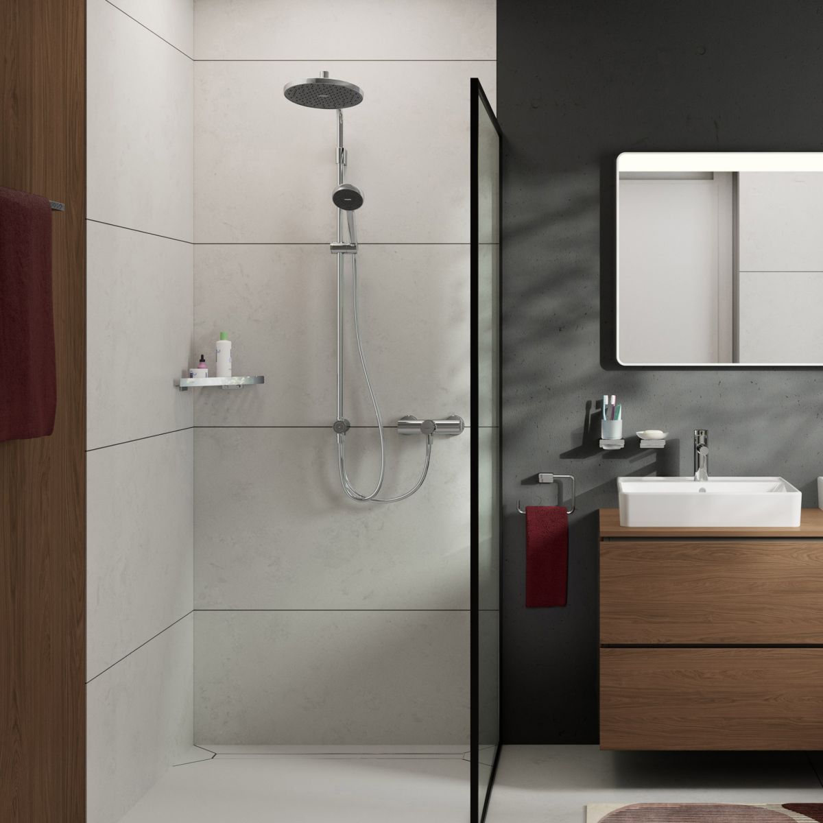 - PushSlider: Suportul de duș poate fi acționat cu o singură mână și este reglabil la infinit