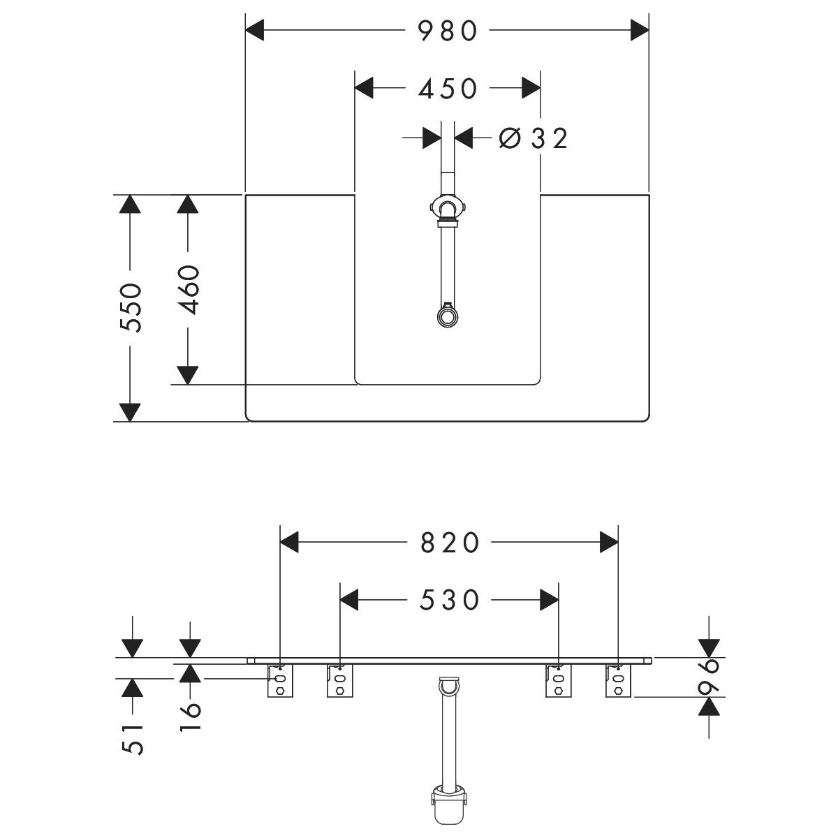 Hansgrohe Xelu Q blat 98x55 cm nucă 54095630