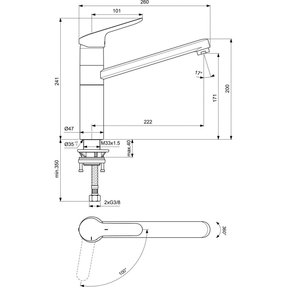Ideal Standard Ceraflex baterie bucătărie pe picior crom BC135AA