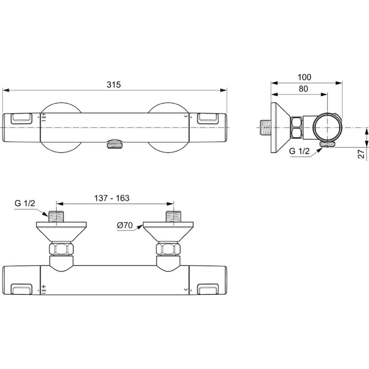 Ideal Standard Ceratherm T25 baterie de duș perete cu termostat crom A7201AA