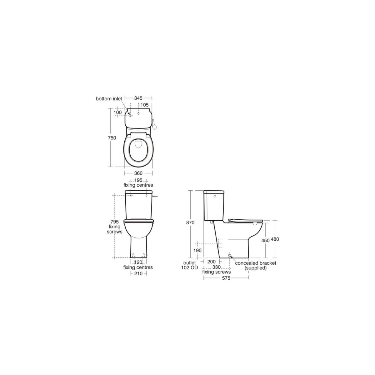 - WC înșurubat pe podea cu suporturi ascunse (furnizate) și rezervor înșurubat pe perete (se achiziționează separat)