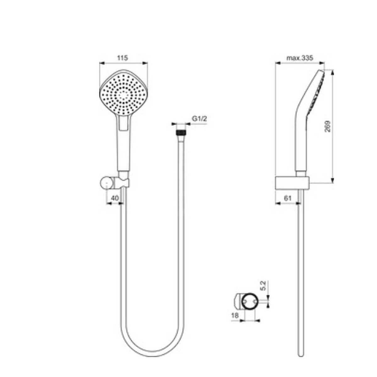 - Inclus: duș de mână, furtun de duș, suport de duș