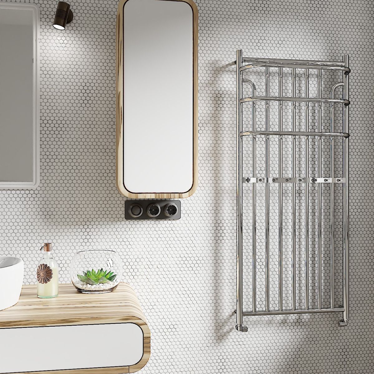 Un radiator modern cu proprietăți decorative și funcționale. Designul său unic și cei trei dipoli caracteristici se remarcă prin forma dinamică și numeroasele caracteristici funcționale. Elegant și funcțional, este fabricat în întregime din materiale inoxidabile, precum cupru și alamă.