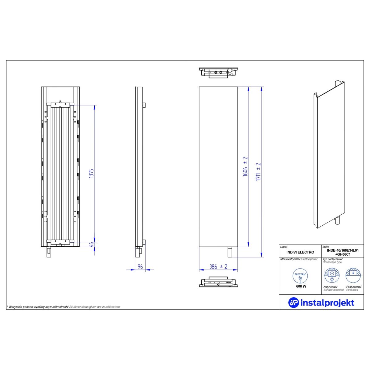 Instal Projekt Indivi Electro încălzitor electric 160.6x38.6 cm alb INDE-40/160E34L01+GH-06C1