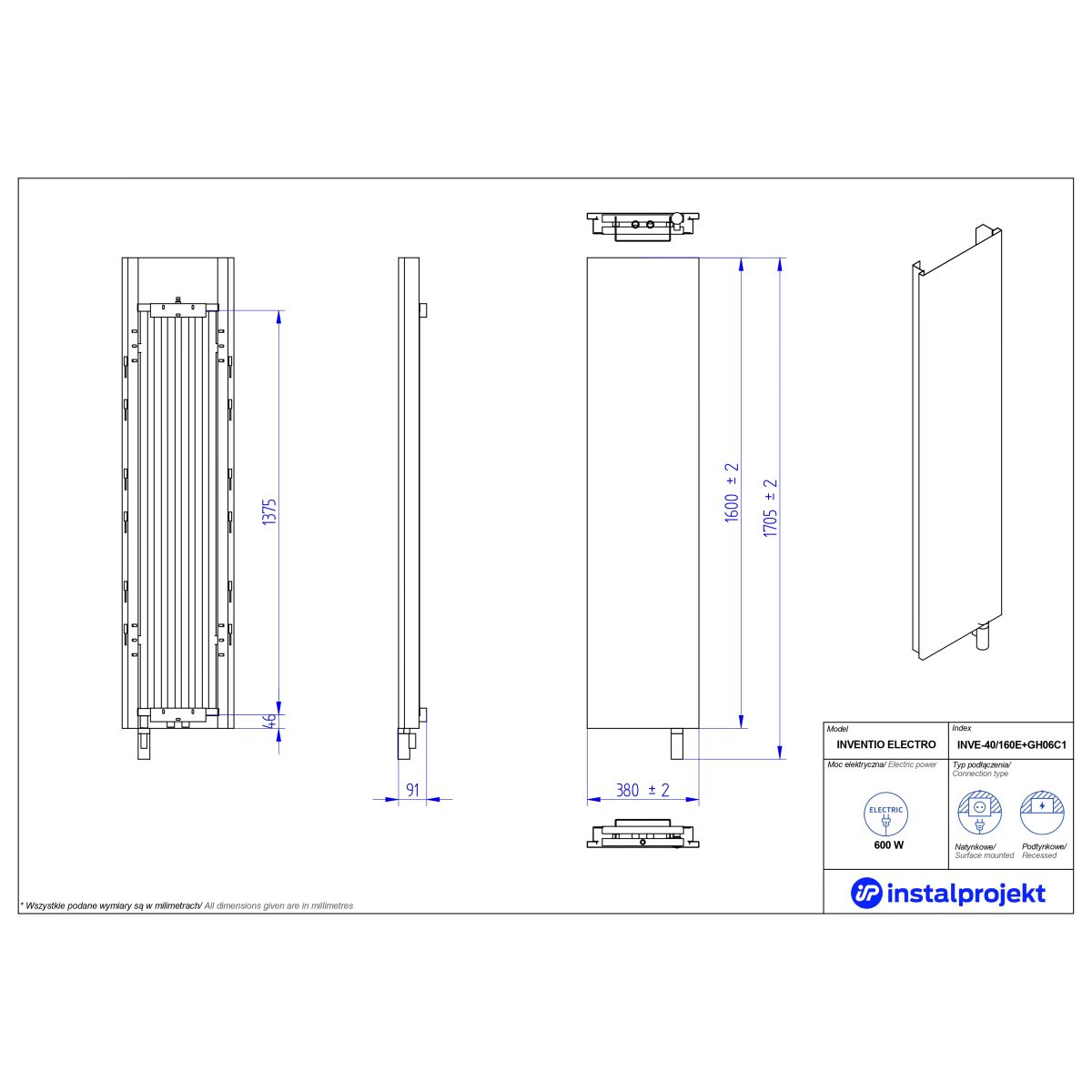 Instal Projekt Inventio Electro încălzitor electric 160x38 cm alb-negru INVE-40/160E31+GH-06C2