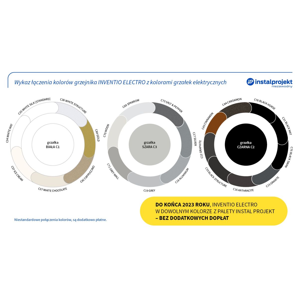 Inventio Electro este un hit pe piața radiatoarelor de design și probabil cel mai la modă și minimalist încălzitor de cameră! Are o parte frontală din metal acoperit cu pulbere care aduce armonie și eleganță în interior. Este, de asemenea, extrem de durabil. Puteți expune cu ușurință radiatorul - lângă canapea, rafturi de cărți sau în hol - sau îl puteți ascunde, datorită distanței scurte dintre partea frontală și perete. Ecranul neted nu colectează praf în exces și este ușor de curățat, ceea ce reprezintă un atu neprețuit pentru iubitorii de armonie și ordine. Este disponibil în nu mai puțin de 23 de culori din paleta Instal Projekt și 10 tipuri de dimensiuni și puteri de încălzire diferite. Încălzitorul poate