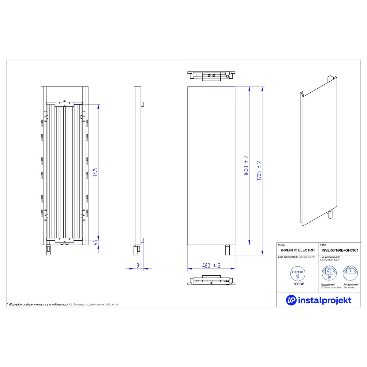 Instal Projekt Inventio Electro încălzitor electric 160x48 cm alb INVE-50/160E+GH-09C1