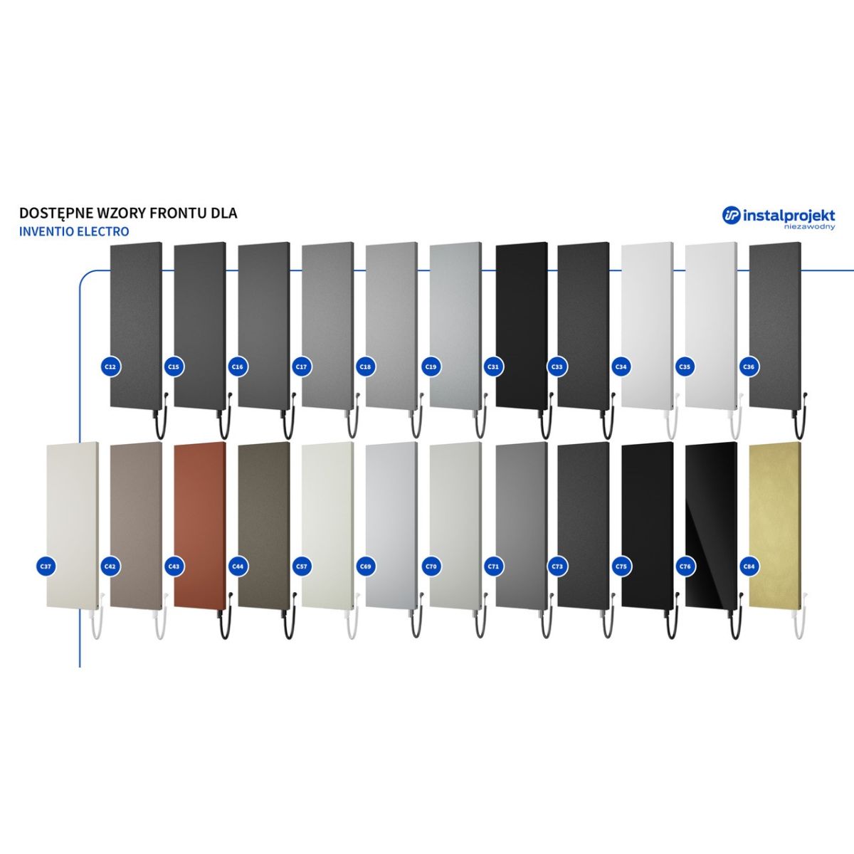 Inventio Electro este un hit pe piața radiatoarelor de design și probabil cel mai la modă și minimalist încălzitor de cameră! Are o parte frontală din metal acoperit cu pulbere care aduce armonie și eleganță în interior. Este, de asemenea, extrem de durabil. Puteți expune cu ușurință radiatorul - lângă canapea, rafturi de cărți sau în hol - sau îl puteți ascunde, datorită distanței scurte dintre partea frontală și perete. Ecranul neted nu colectează praf în exces și este ușor de curățat, ceea ce reprezintă un atu neprețuit pentru iubitorii de armonie și ordine. Este disponibil în nu mai puțin de 23 de culori din paleta Instal Projekt și 10 tipuri de dimensiuni și puteri de încălzire diferite. Încălzitorul poate