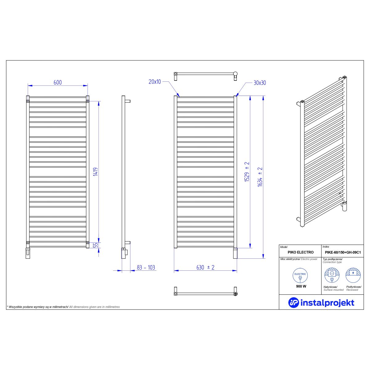 Instal Projekt Piko Electro încălzitor electric 152.9x63 cm alb PIKE-60/150+GH-09C1