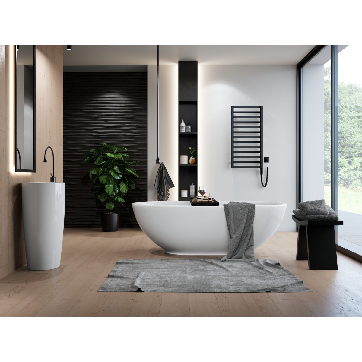 Radiatorul electric Poppy Electro este o variantă modernă a binecunoscutei scări, cu două rânduri de profile orizontale, înguste, cu o secțiune transversală dreptunghiulară, care adaugă o notă de originalitate. Acesta introduce un accent geometric extrem de la modă în interior. Formele adaugă spațialitate, iar forma închisă este responsabilă pentru senzația de armonie și liniște. Radiatorul este disponibil în culorile alb și negru, în varianta mată, lucioasă, cu structura materială vizibilă, dar și în toate cele 23 de culori din gama IP. Este posibilă conectarea încastrată, astfel încât unitatea devine parte integrantă, ca să spunem așa, fără fire proeminente, creând un efect de coeziune frumoasă.