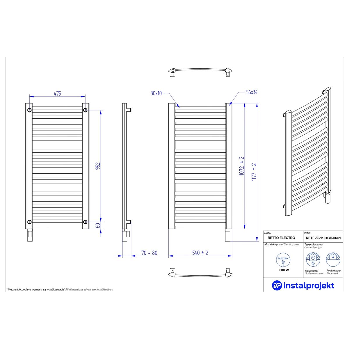 Retto Electro este un radiator de baie alimentat de un încălzitor electric. Datorită acestei tehnologii, acesta funcționează ori de câte ori este nevoie, prin simpla conectare la priză. Utilizând o tehnologie de încălzire brevetată, acesta consumă o cantitate mică de energie în timp ce generează căldură eficientă. Este o soluție ideală, în special în apartamentele fără sisteme de încălzire centrală, unde există încălzire prin pardoseală sau prin tavan, dar nu există spațiu pentru uscarea textilelor. Instalarea radiatorului este simplă și poate fi realizată cu succes de către dumneavoastră. Mai mult, în cazul unei mutări sau al unei renovări, acesta poate fi mutat și instalat cu ușurință în noua locație. O soluție elegantă care garantează confort și economii de energie.