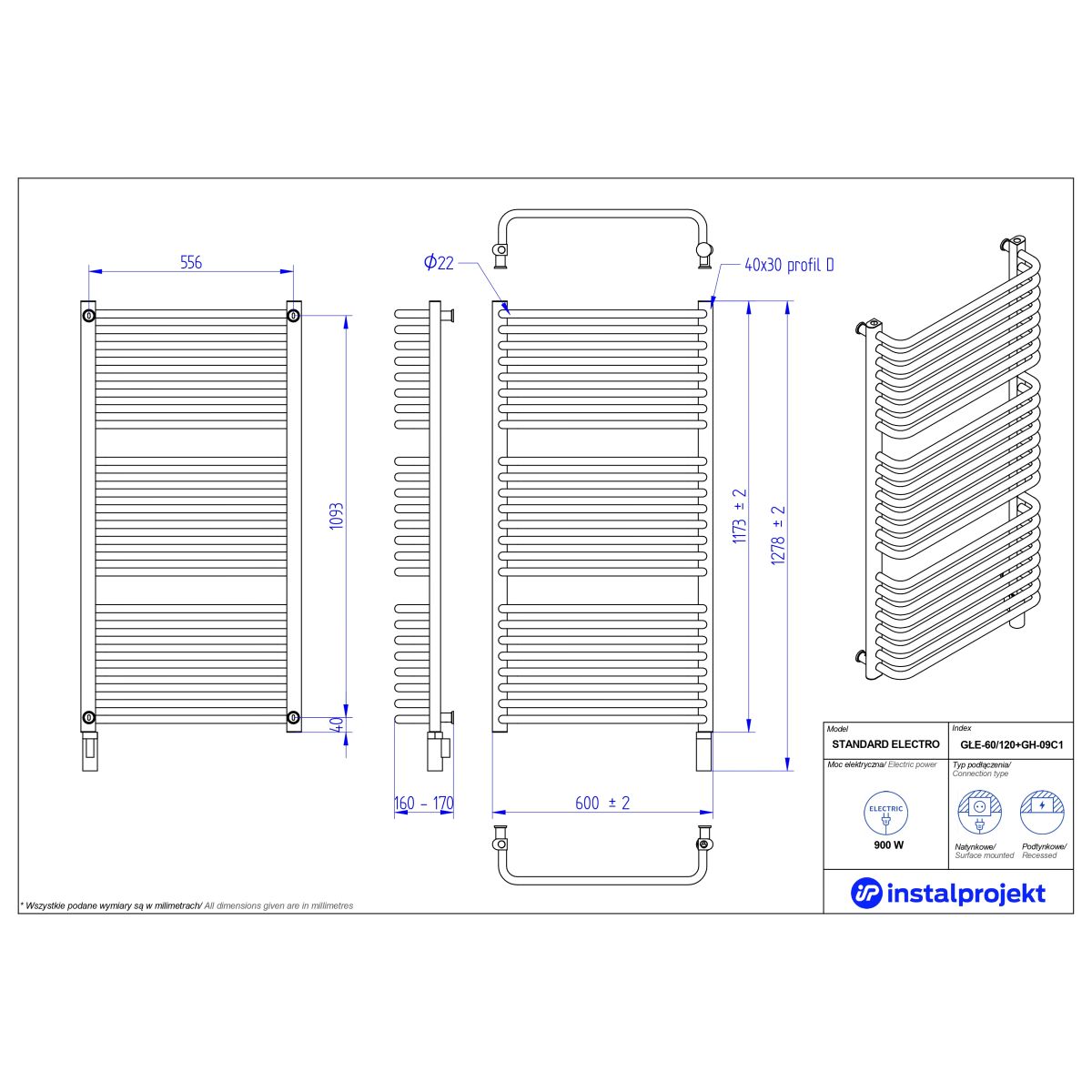 Instal Projekt Standard Electro încălzitor electric 117.3x60 cm alb GŁE-60/120+GH-09C1