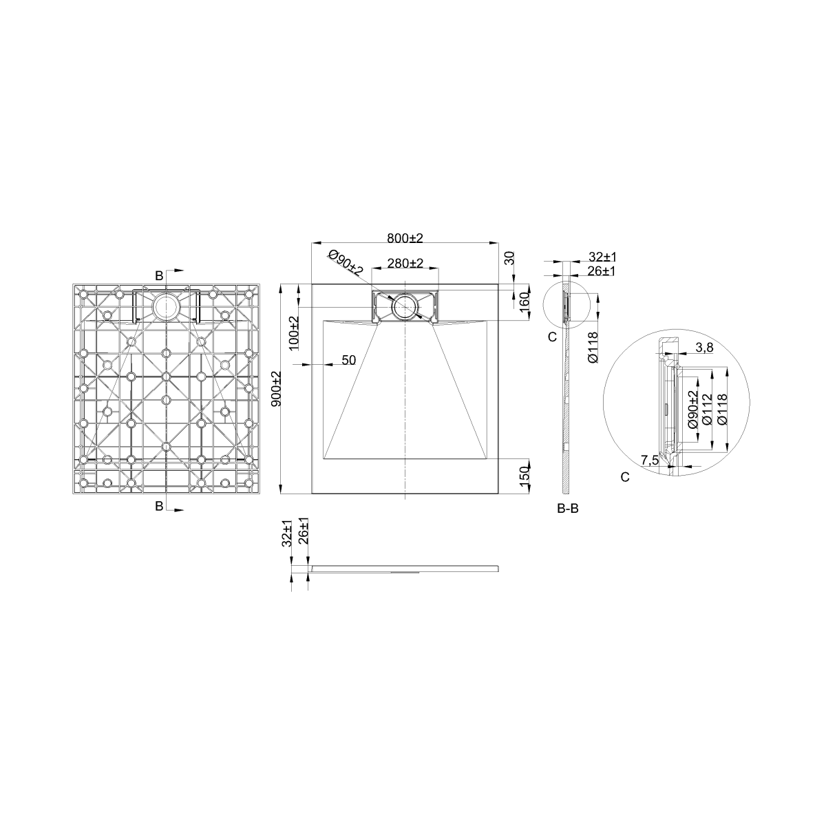 Tava de duș de 80 × 90 cm permite un spațiu util puțin mai mare, păstrând în același timp o formă subțire, geometrică. Este ideală pentru băile de dimensiuni mici și medii. Construcția sa ușoară din compozit SMC termorezistent garantează ușurința de asamblare și transport. Suprafața de piatră antiderapantă face dușul sigur și plăcut. Opțiunea de a o tăia la dimensiune înseamnă că tava de duș poate fi adaptată la orice nișă. Se combină cu sifonul Easy Clean (SU-AK-701) sau cu sifonul Slim (SU-AK-702).