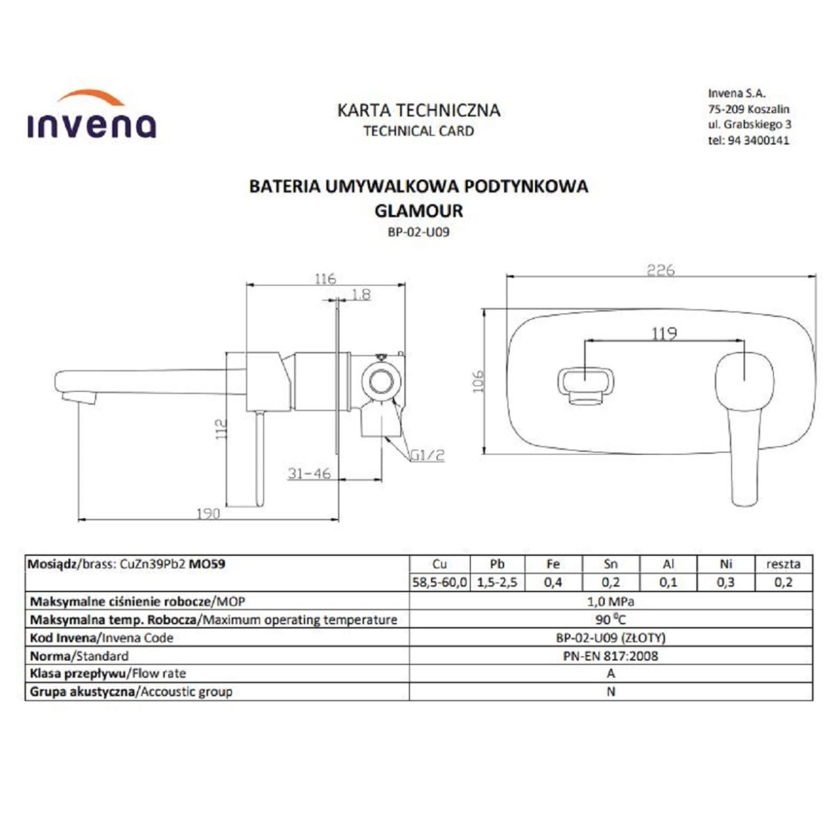 Invena Glamour baterie lavoar ascuns auriu BP-02-U09
