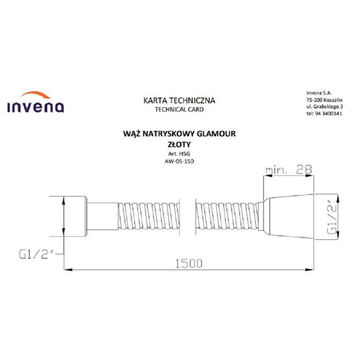 Invena Glamour furtun de duș 150 cm auriu AW-05-150