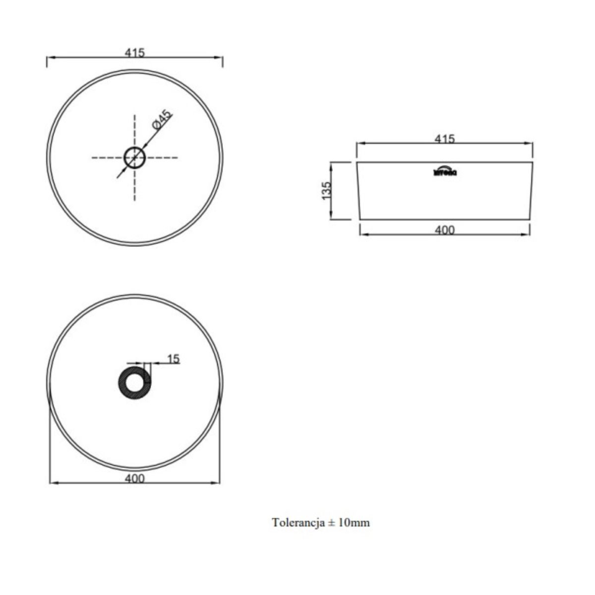 - diametru: 41,5 cm