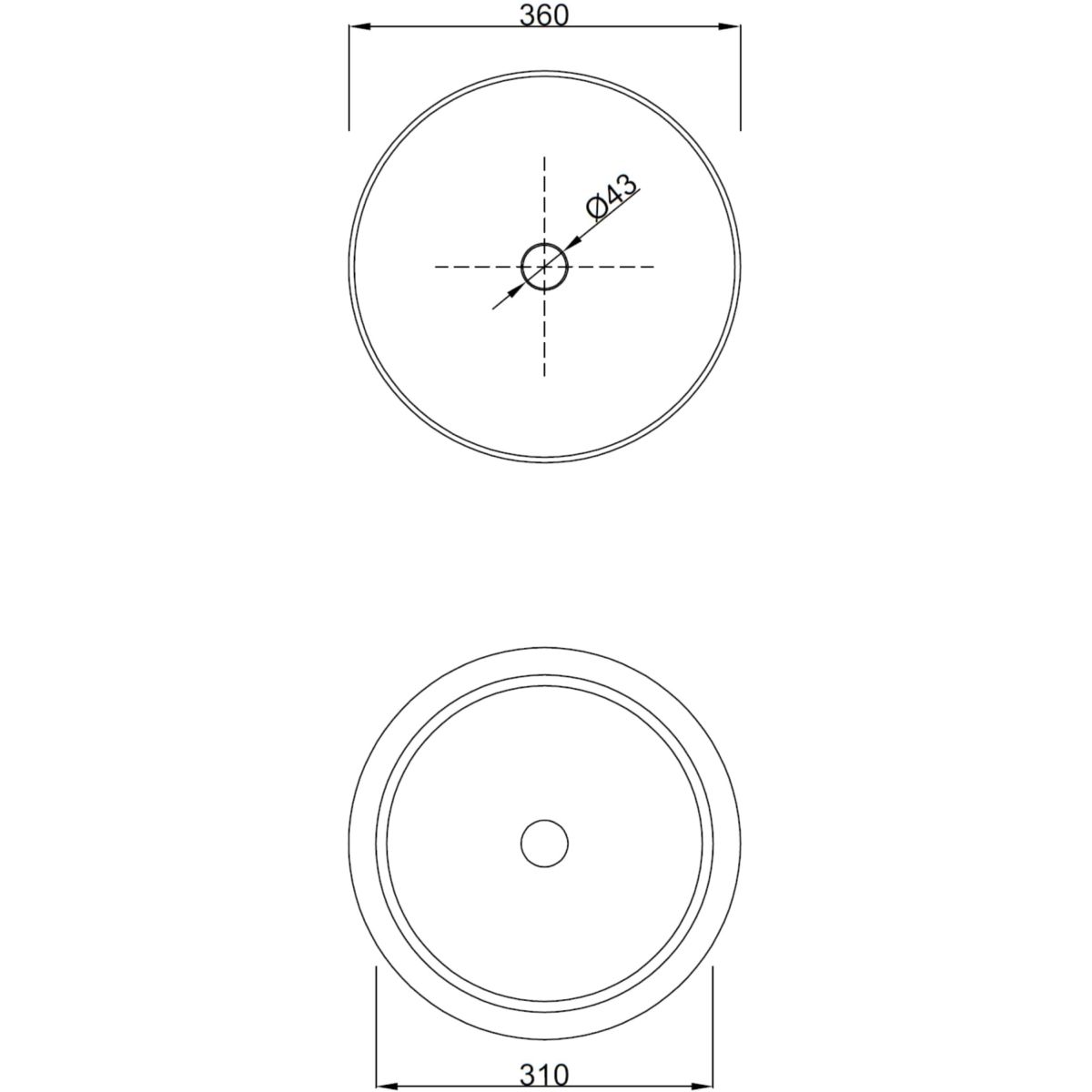 Invena Limnos lavoar 36x36 cm rotund de blat alb CE-59-001-W