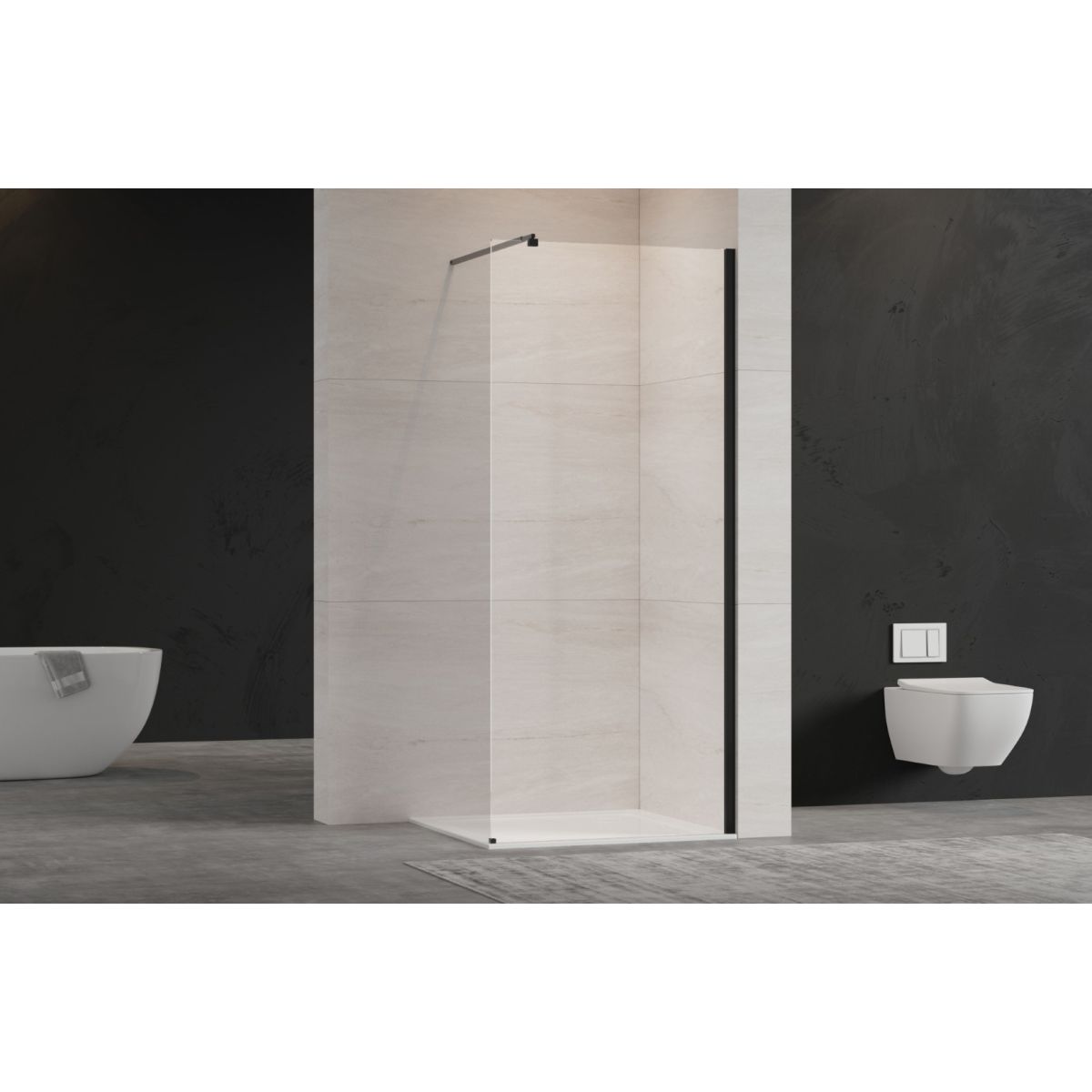 Descoperiți eleganța și funcționalitatea oferite de peretele de duș walk-in cu profil negru. Este soluția perfectă pentru cei care apreciază designul modern și manopera de înaltă calitate. Echipat cu sticlă transparentă călită de 8 mm grosime, acesta nu numai că oferă un aspect estetic plăcut, dar asigură și siguranța utilizării. Acoperirea Shiny-Glass asigură faptul că cabina de duș este ușor de păstrat curată, făcând din întreținerea zilnică o joacă de copii.
