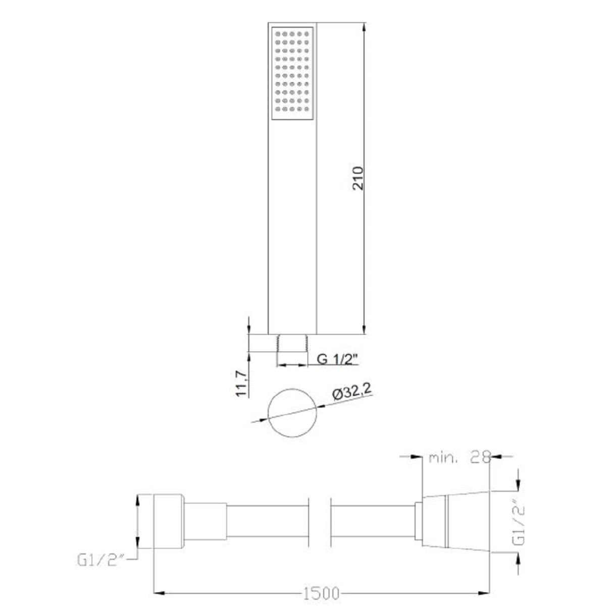 Inclus: baterie cu comutator, duș ploaie, duș de mână, furtun de duș, braț de duș, conexiune unghiulară