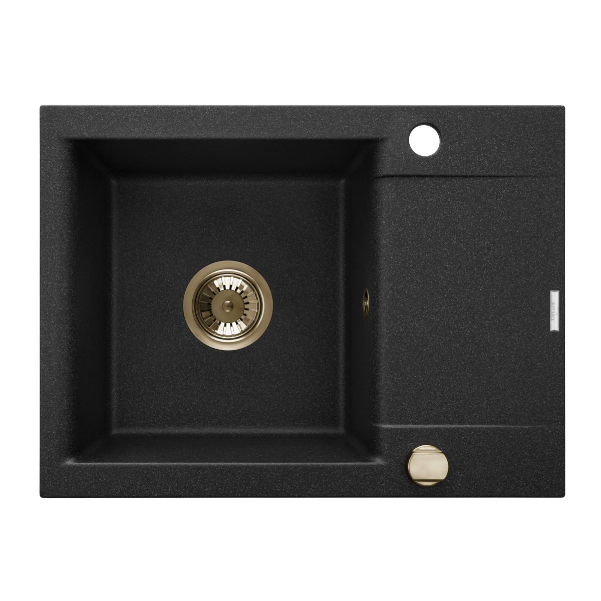 Chiuvetă Tesalia din granit negru punctat, cu un singur vas, cu sifon automat
