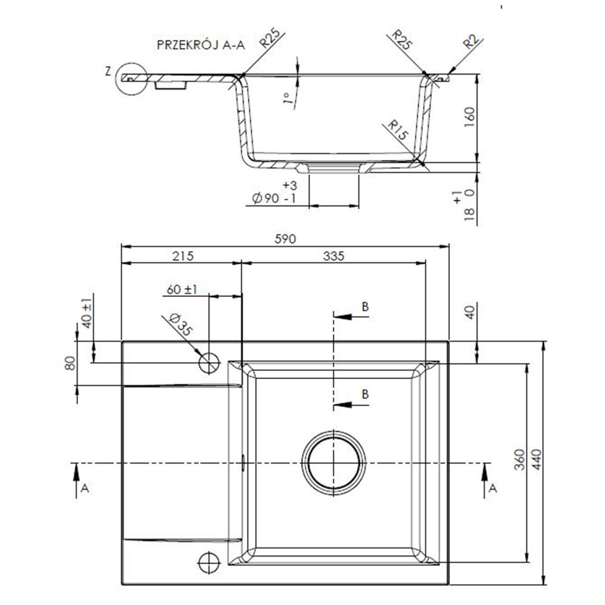 - chiuveta are un orificiu gata pregătit pentru robinetul mixer și un buton de scurgere
