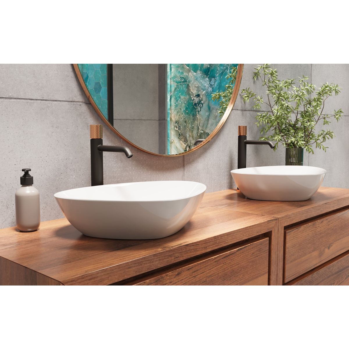 Lavoarul cu blat triunghiular adaugă condimentul proverbial zonei de lavoar. Forma trendy și albul clasic al ceramicii se potrivesc perfect pentru cei care preferă soluțiile neconvenționale. Triunghiul este un model perfect pentru băile cu o suprafață mică, menținând în același timp spațiul ergonomic și funcționalitatea. Lavoarul este fabricat din ceramică de înaltă calitate și se potrivește perfect cu mixerele pentru bazine înalte sau mixerele cu instalare ascunsă.