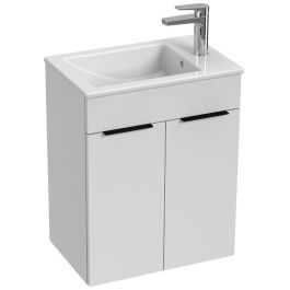Dulapul de chiuvetă cu 2 uși, de formă geometrică, este oferit într-un set 1+1 PACK împreună cu chiuveta Cube 500 x 340 mm cu spațiu de depozitare. Mânerele sunt într-o culoare neagră practică. Există o garanție de 2 ani pentru mobilierul de baie Cube.