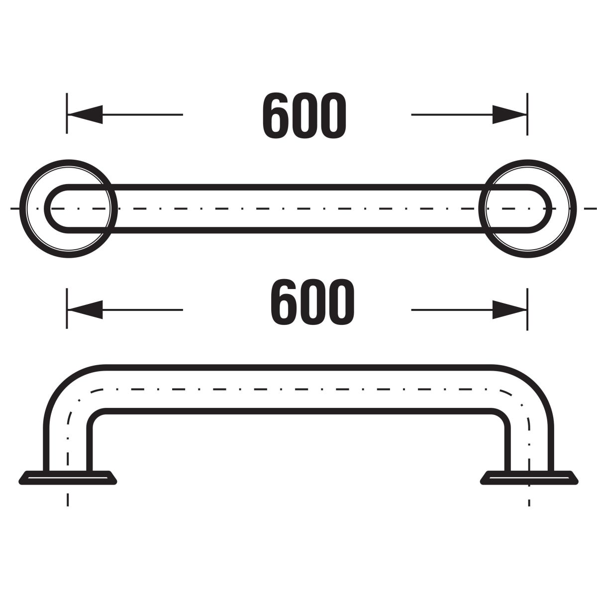 Mânerul universal orizontal din seria Universum, cu o lungime de 600 mm, aparține accesoriilor de baie fără bariere și este fabricat din oțel inoxidabil lustruit, de culoare albă.