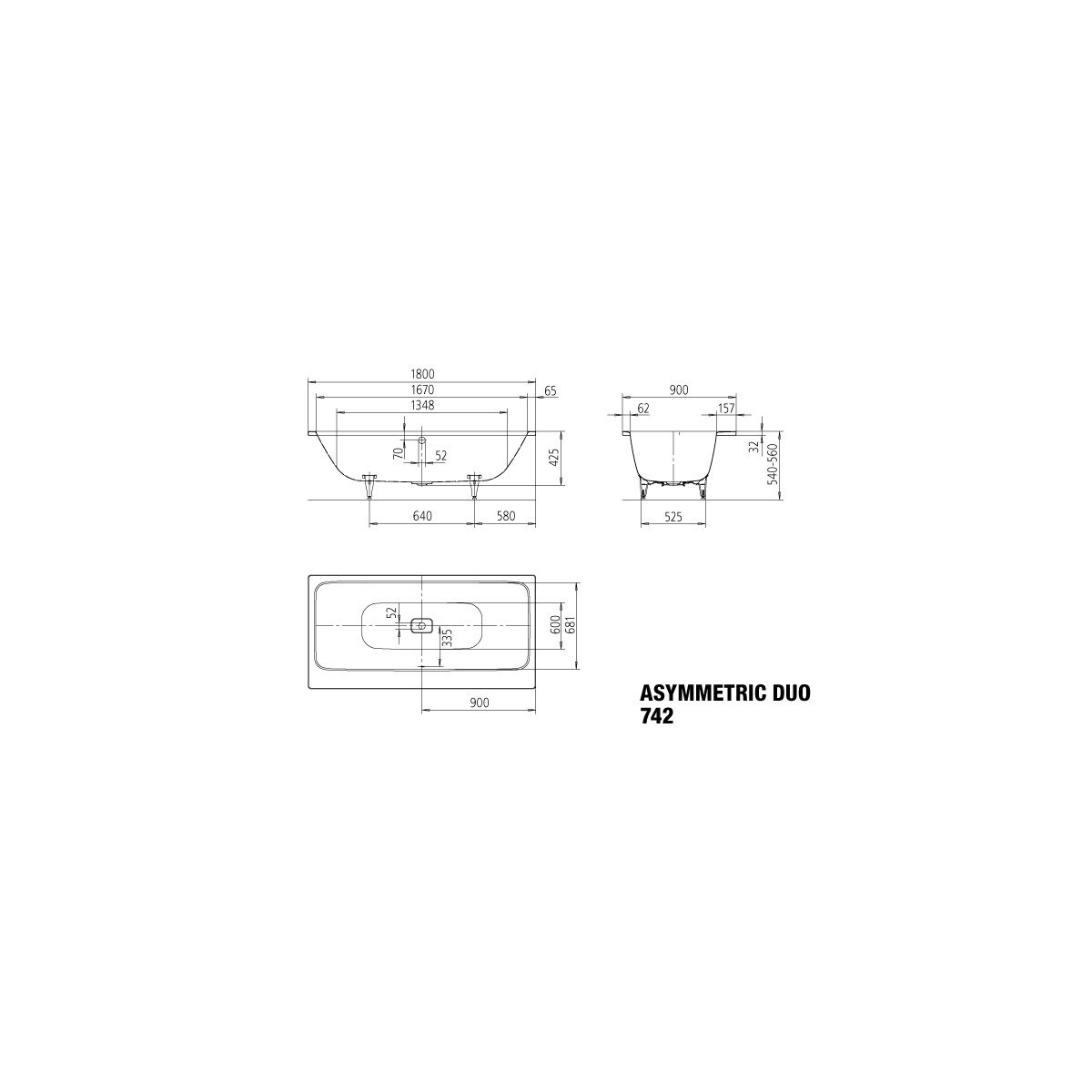 Kaldewei Asymmetric Duo cada dreptunghiulară 180x90 cm alb 274230003001