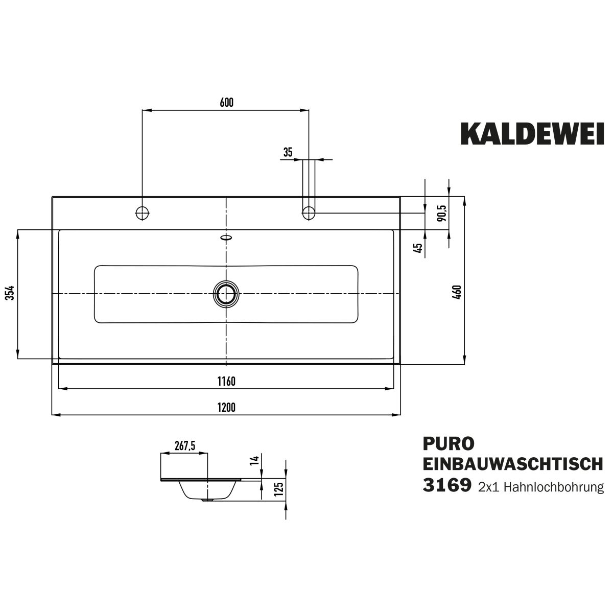 Kaldewei Puro lavoar 120x46 cm dreptunghiular încastrat alb 907106043001