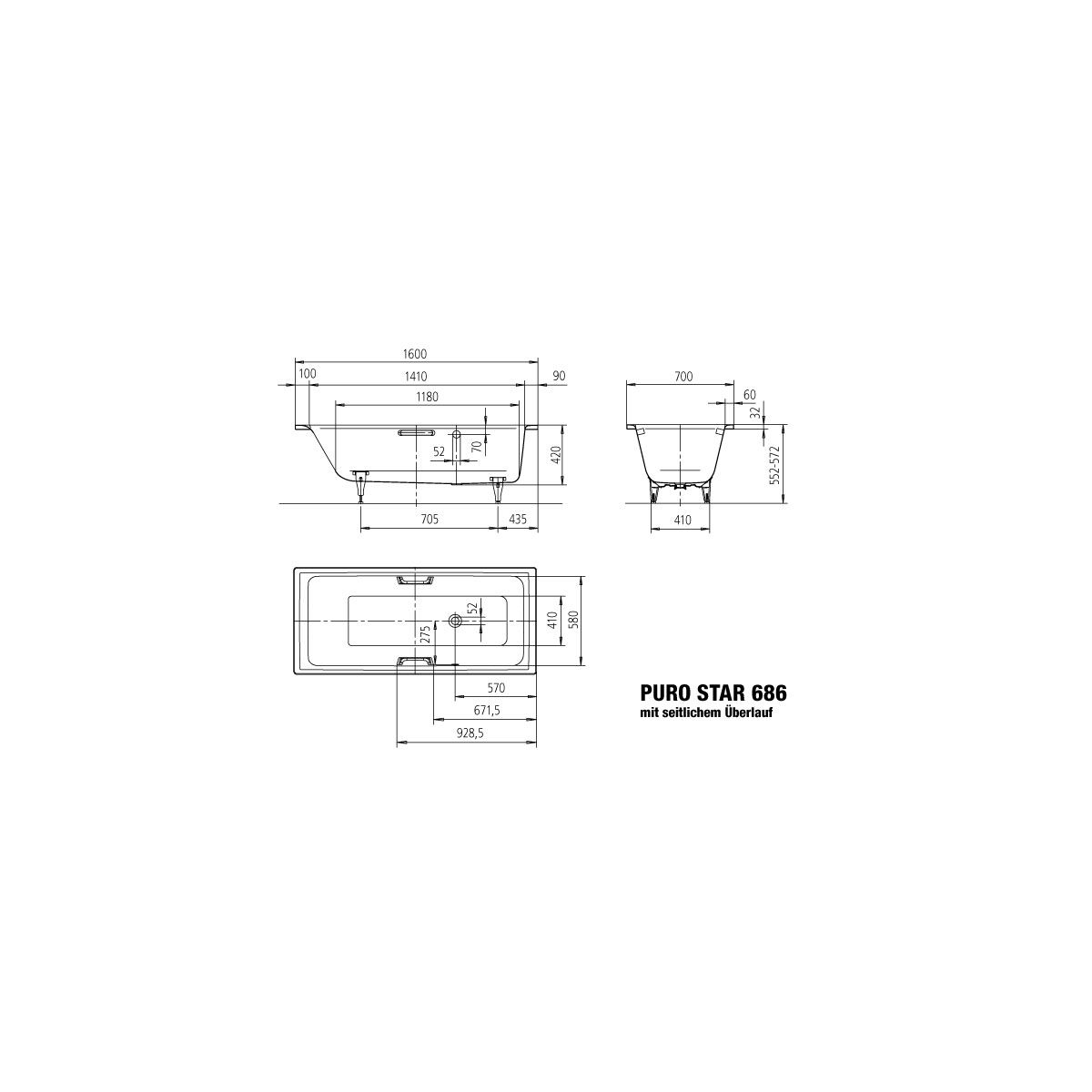 Kaldewei Puro Star cada dreptunghiulară 160x70 cm 258600011001
