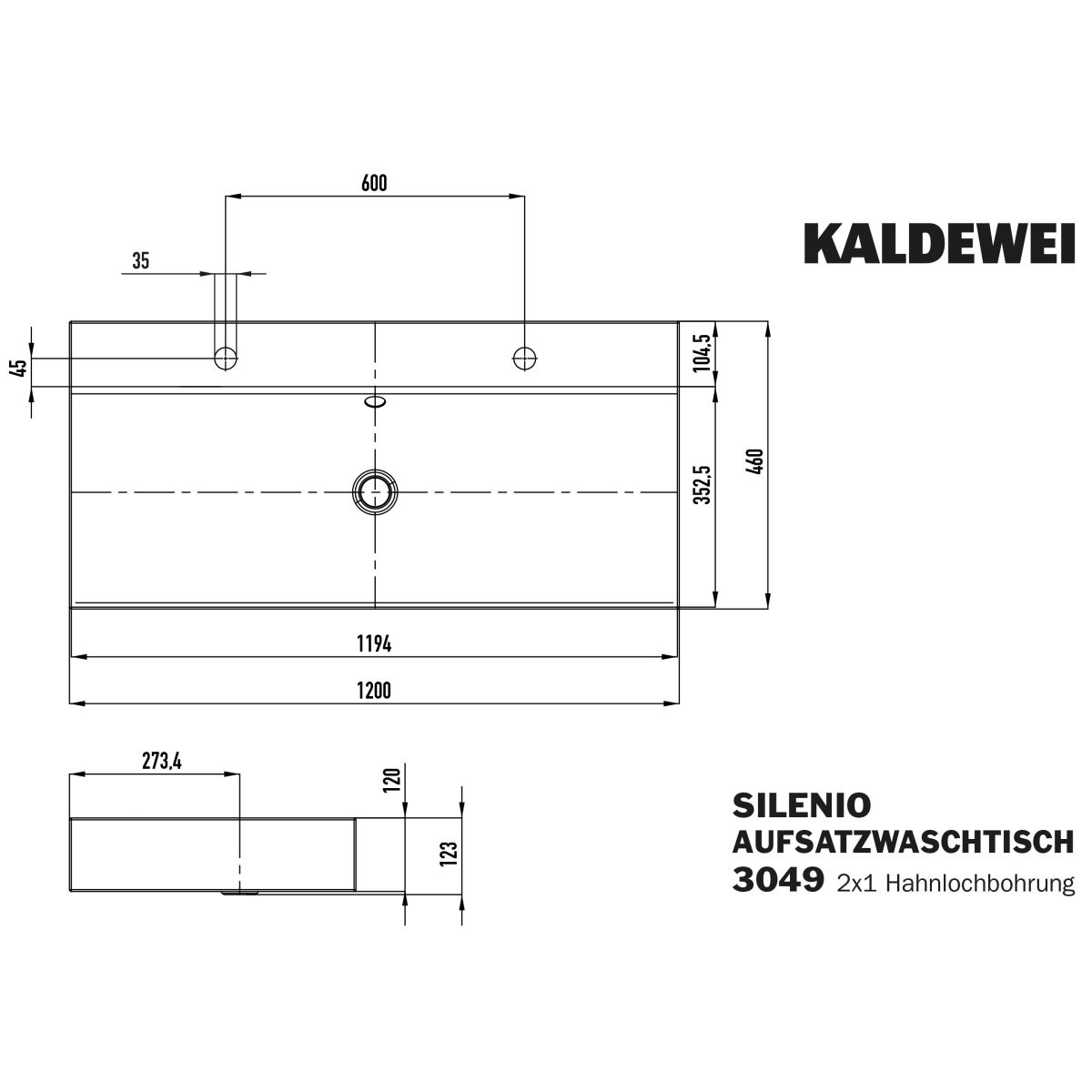 Kaldewei Silenio lavoar 120x46 cm dreptunghiular de blat alb 906406043001
