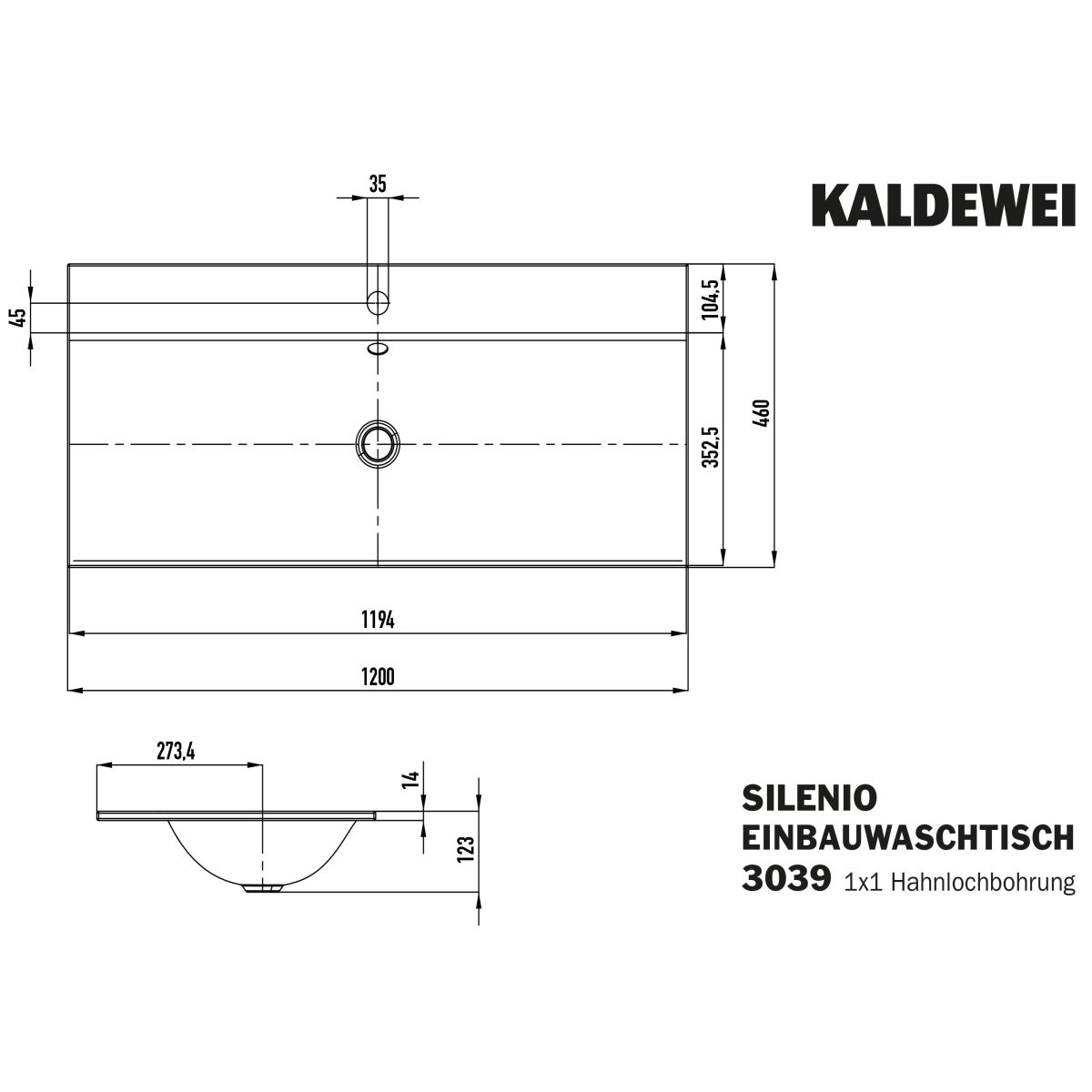 Kaldewei Silenio lavoar 120x46 cm dreptunghiular încastrat alb 907906303001