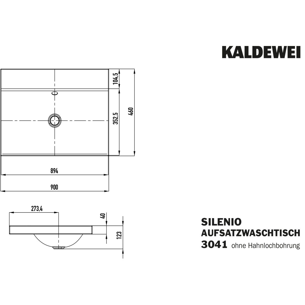 Kaldewei Silenio lavoar 90x46 cm dreptunghiular de blat alb 904006003001