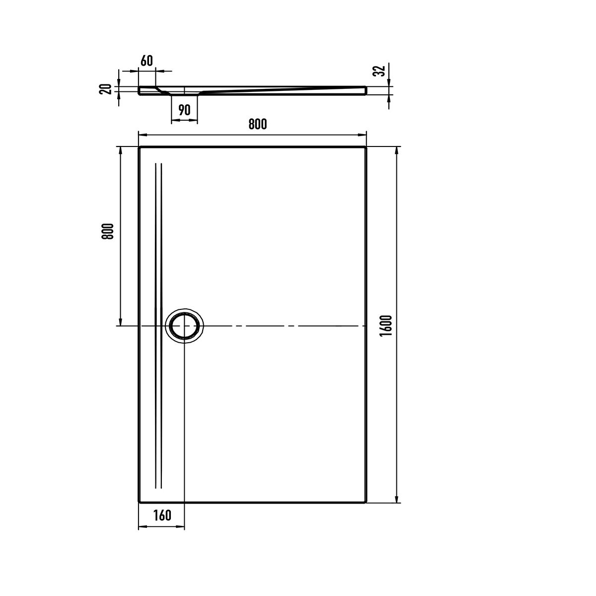 - tavă de duș dreptunghiulară