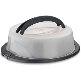 Recipientul de culoare gri închis are un capac detașabil și mânere pentru transport ușor.