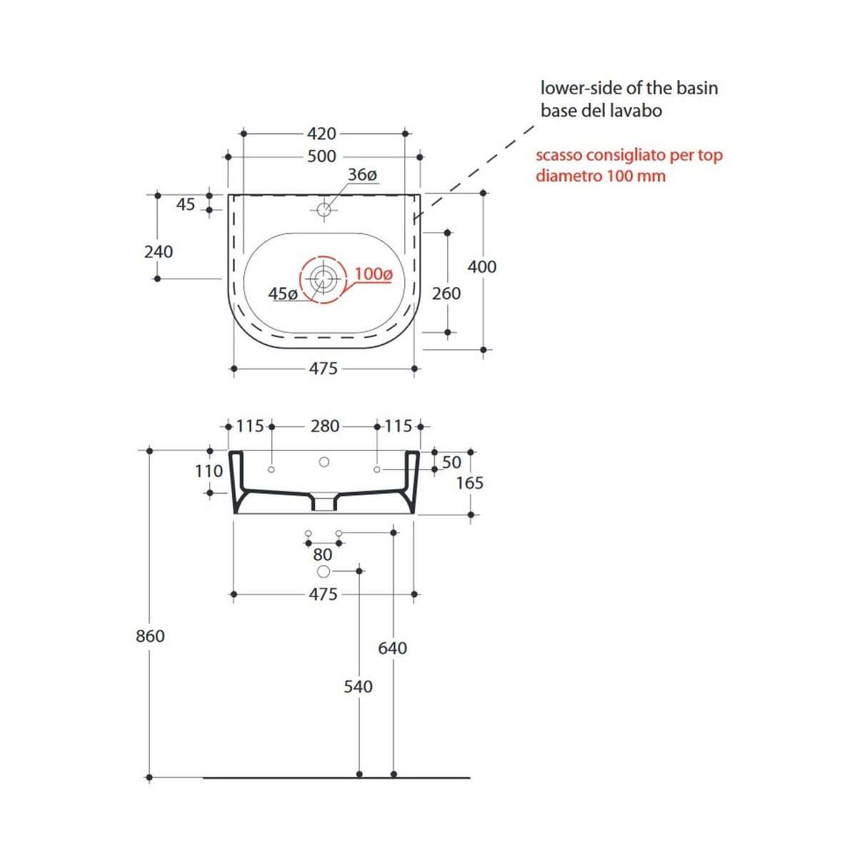 Kerasan Flo lavoar 50x40 cm semicircular clasică alb 314101