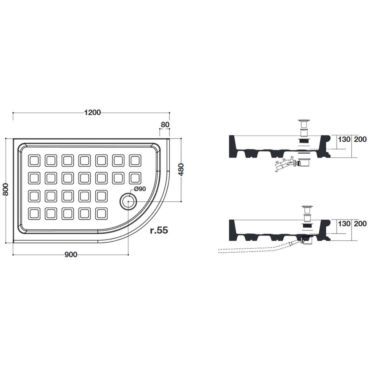 - Diametrul scurgerii [mm]: 90