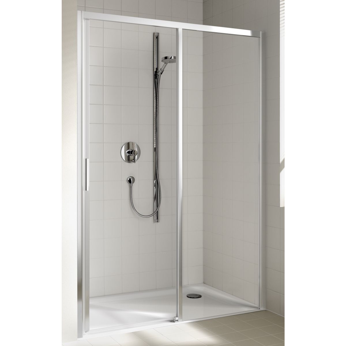 Kermi Cada XS uși de duș 150 cm culisantă argint luciu/sticlă transparentă CKD2R15020VPK
