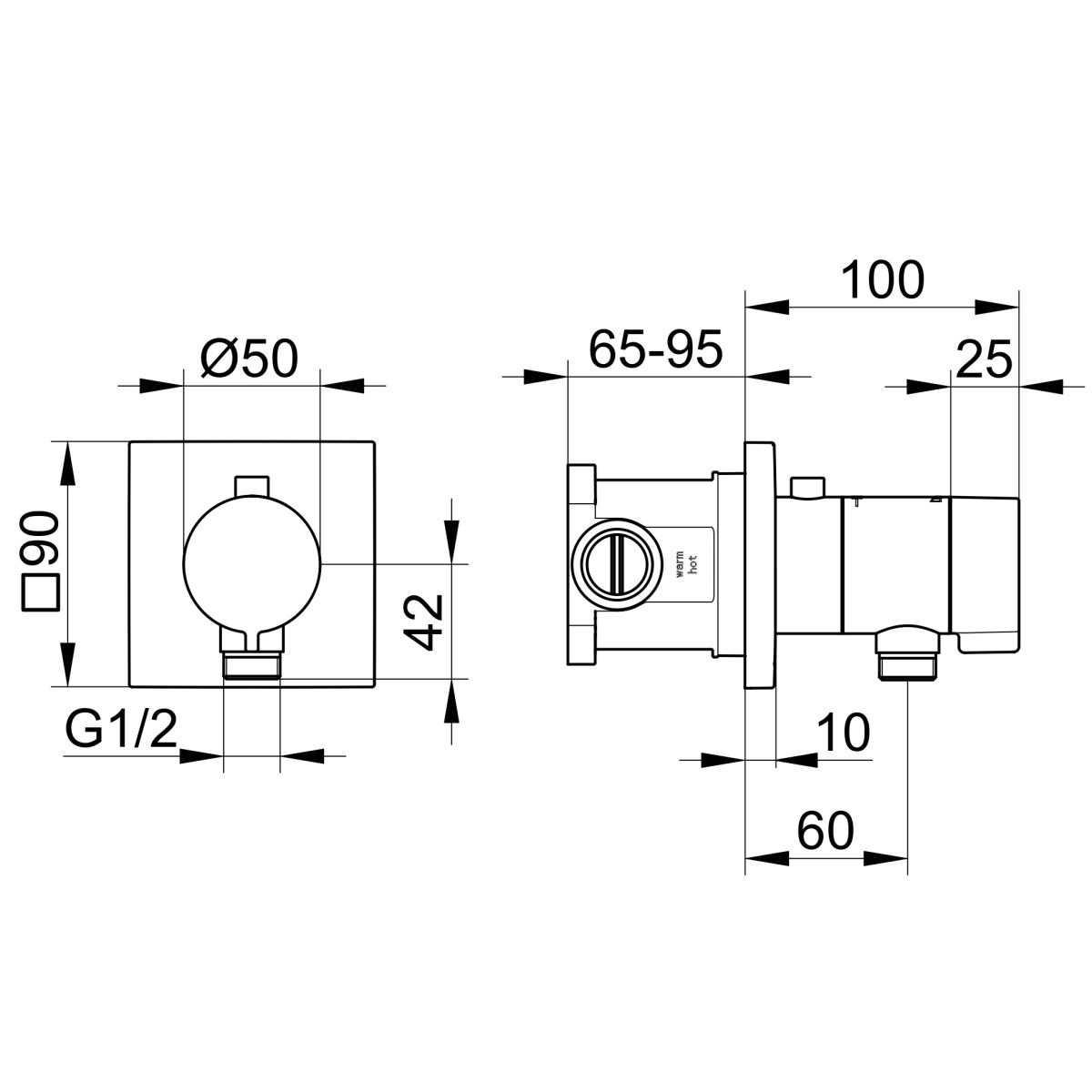Mixer termostatic pentru instalare ascunsă cu racord de furtun DN 15