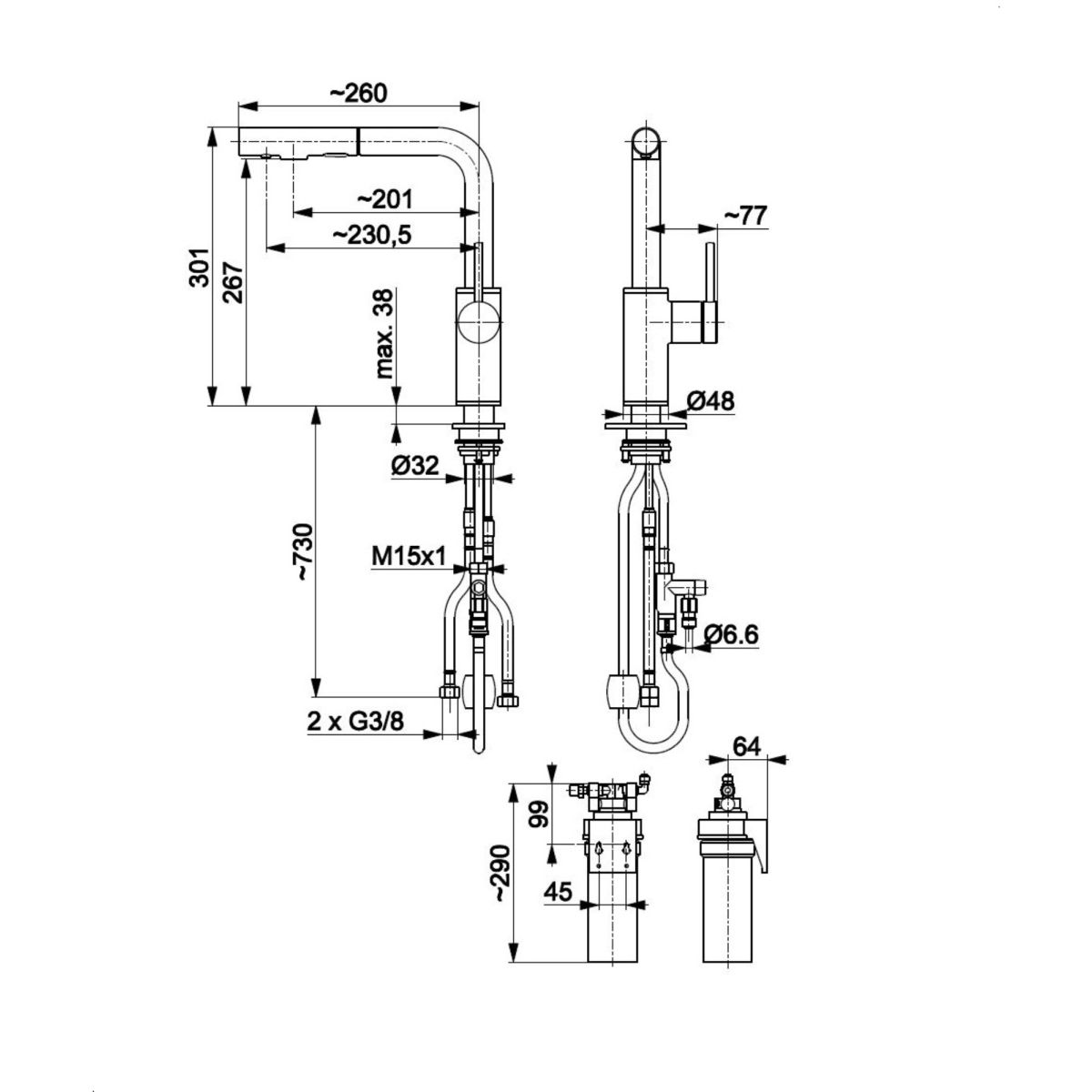 - debit de apă: apă amestecată 6 l/min / apă filtrată 2,5 l/min