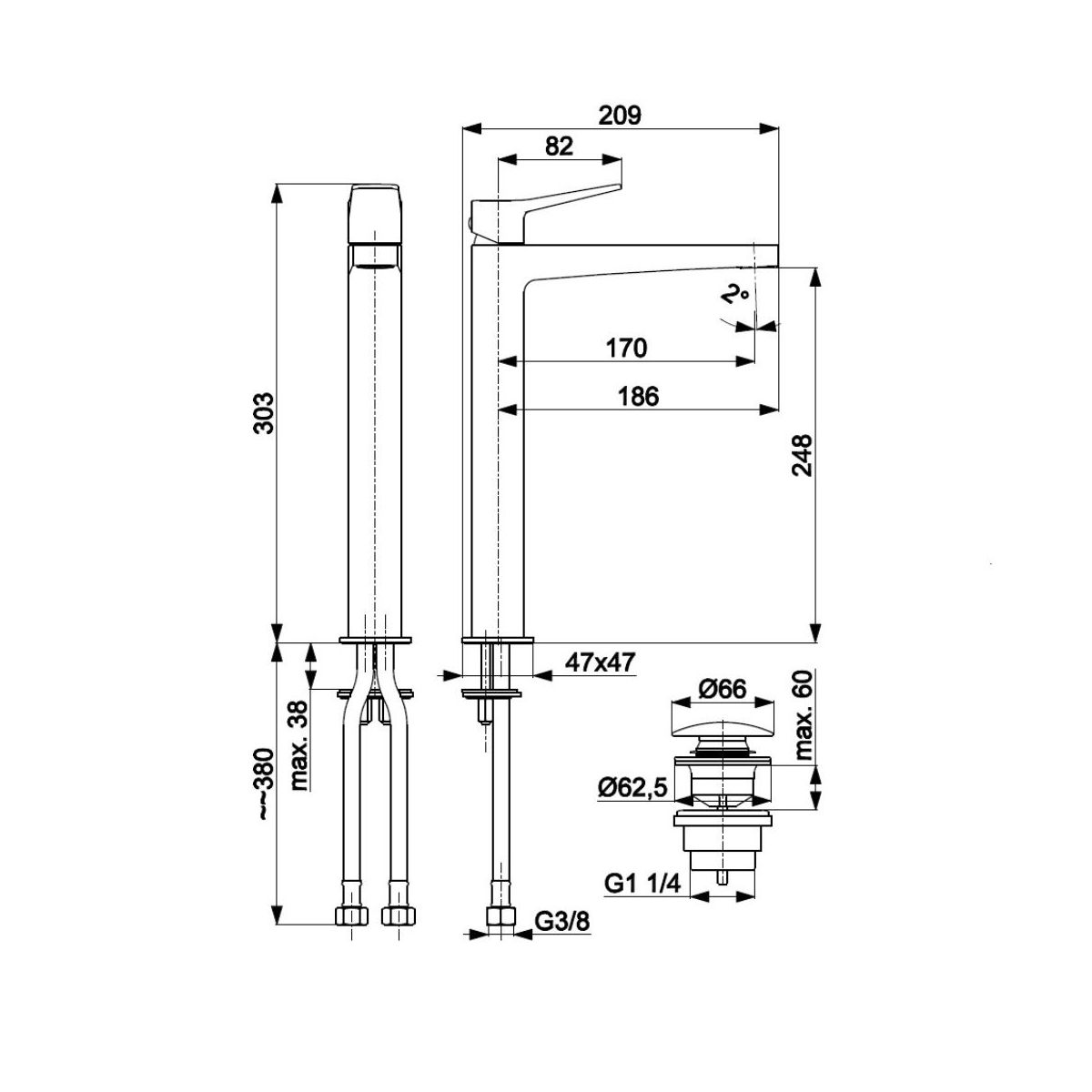 - conținutul pachetului: scurgere click-clack, set de fixare cu garnituri, conexiuni flexibile M10x1/G3/8" (L=450mm, 2 buc.)