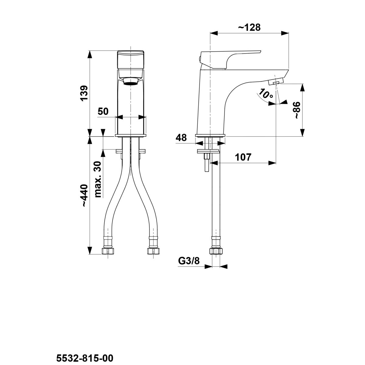 - inclus: set de fixare cu garnituri, conectori flexibili M10x1/G3/8" cu o lungime de 35 cm (2 bucăți)