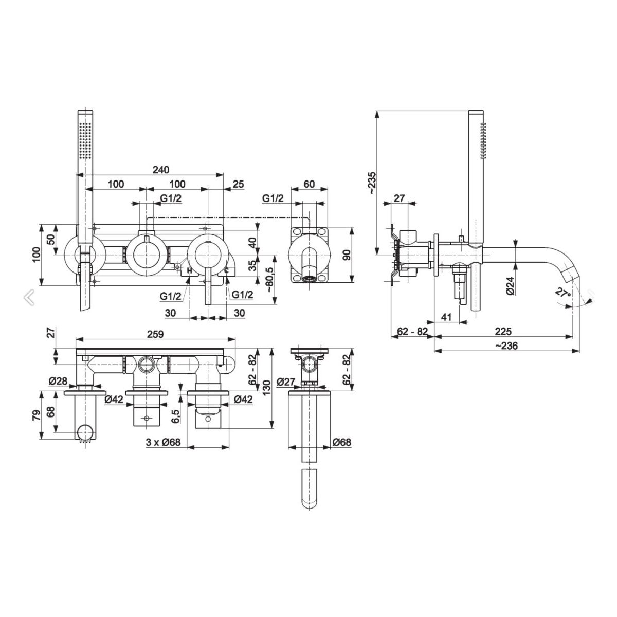 KFA Armatura Moza Rose Gold baterie cadă-duș ascuns || 5039-411-34