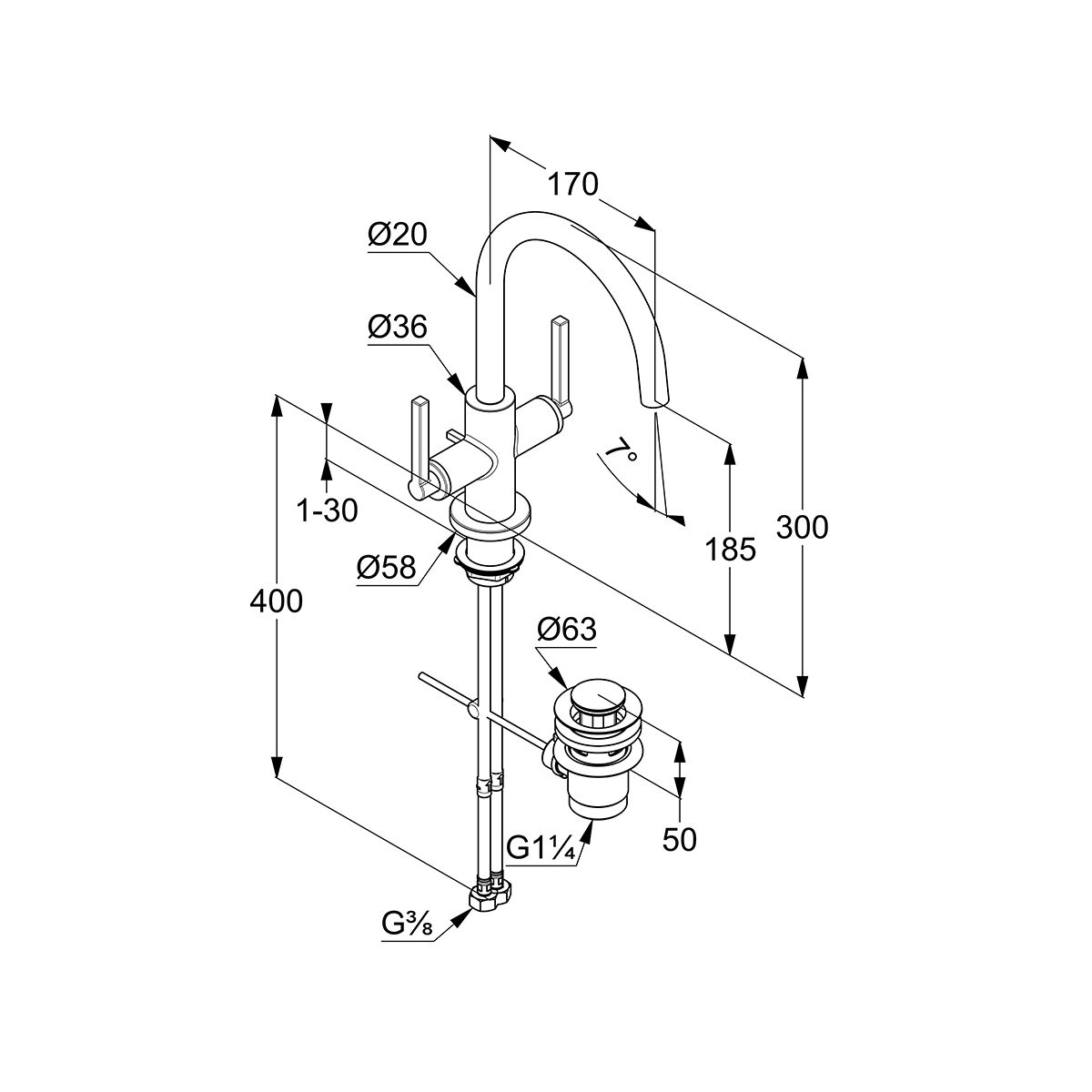 - înălțimea robinetului: 30 cm
