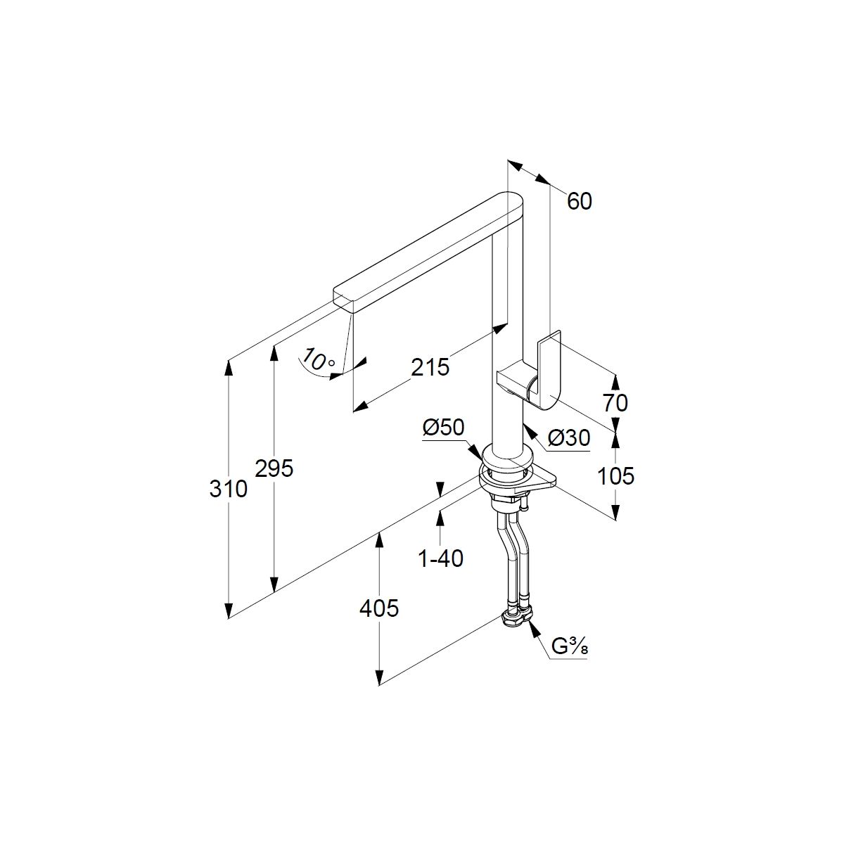 Kludi Qord baterie bucătărie pe picior nichel 56803N575