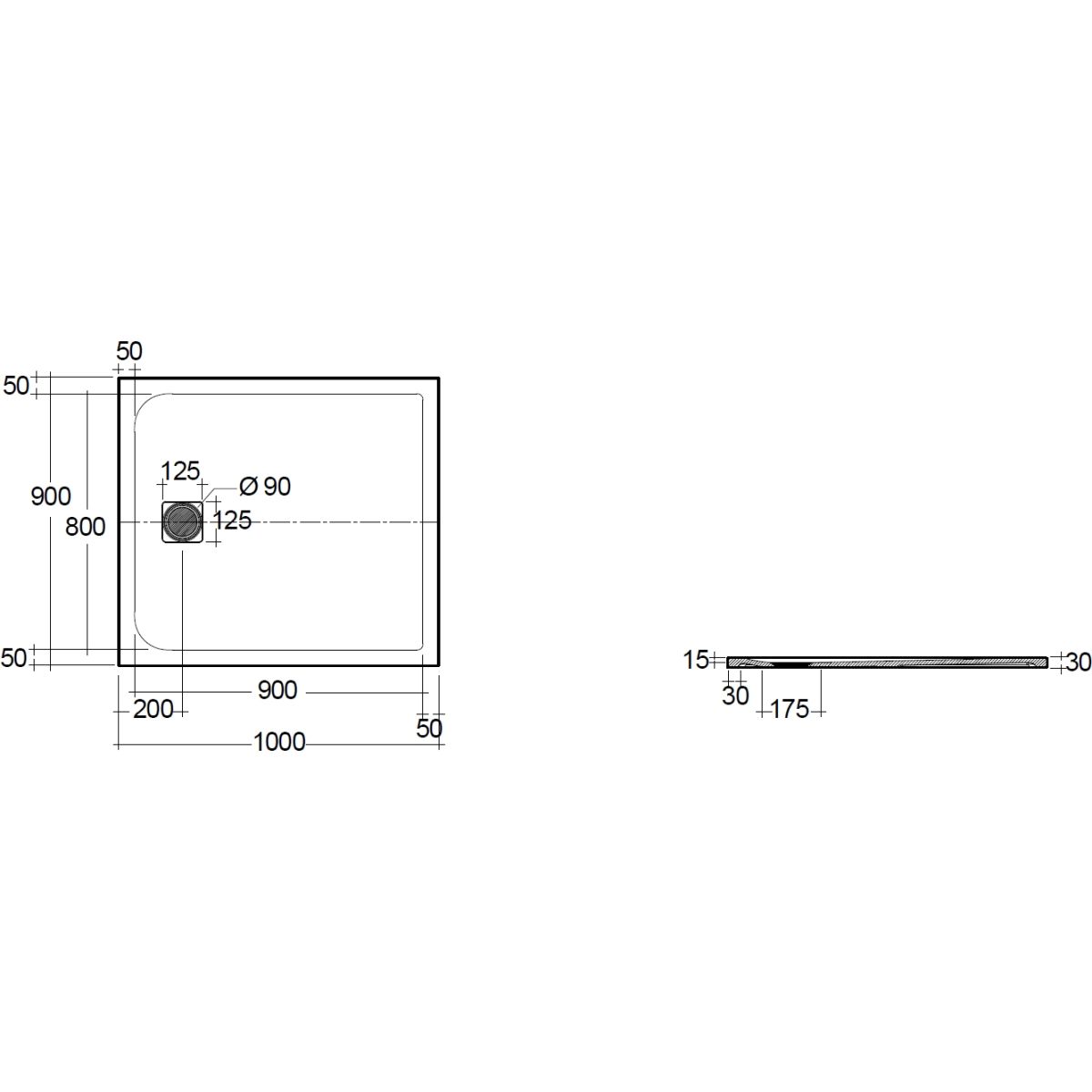 - scurgere poziționată central de-a lungul laturii scurte Ø 9 cm