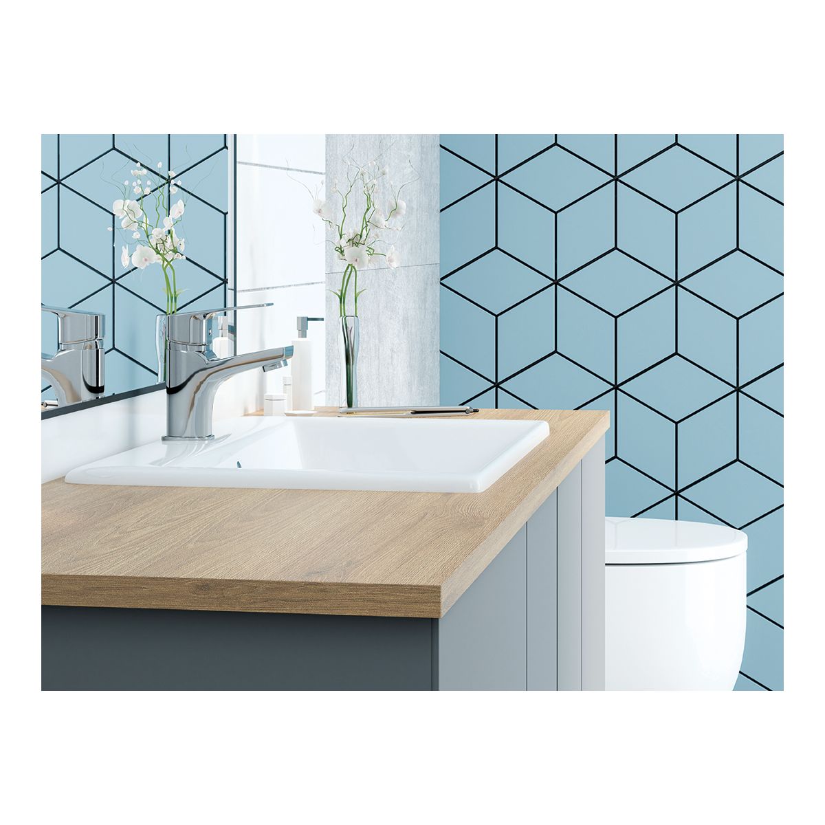 - Inclus: baterie lavoar, baterie cadă, set de duș